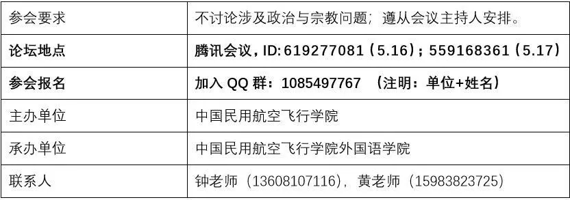 k1体育定于2020年5月16日、17日在线上召开“民航特色翻译硕士点建设”研讨会,邀请翻译硕士教育领域领导与专家进行专题研讨,交流翻译硕士点建设经验。本次会议下设专家论坛和员工论坛。专家论坛邀请MTI教指委领导、院校专家、公司代表探讨翻译硕士点建设中的部分关键问题,员工论坛诚邀各院校MTI员工分享翻译学习及实践中的各种成果,促进校际间员工交流。