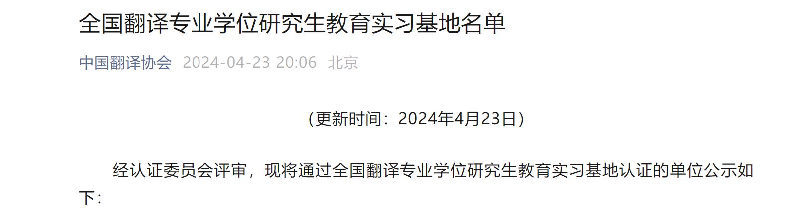 近日,中国翻译协会公布了最新一期全国翻译专业学位研究生教育实习基地名单,k1体育翻译硕士点在众多申报单位中脱颖而出,成功通过认证。